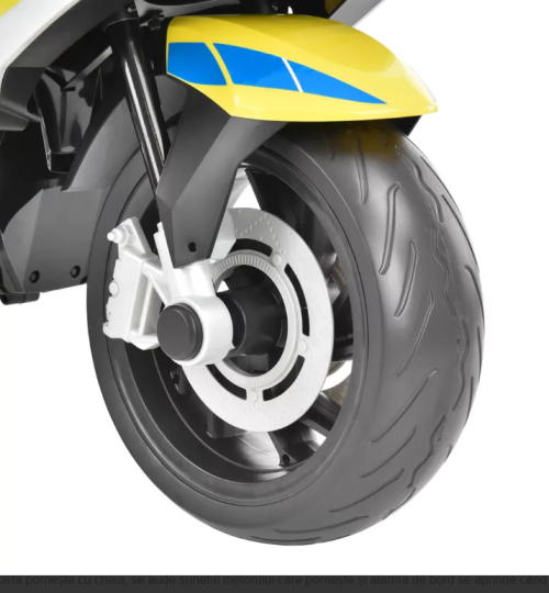 | Vehicul original cu licenta BMW. O motocicleta de politie este probabil visul oricarui baiat. Mai ales daca este echipata cu claxoane si semnale luminoase reale. Motocicleta porneste cu cheia, se aude sunetul motorului care porneste si alarma de bord se aprinde cind se roteste cheia. Exista un panou de control cu butoane pe rezervor. Acestea pot fi folosite pentru a porni si opri balizele, pentru a porni claxonul, sunetul motorului si muzica. Un comutator cu trei pozitii de pe panou comuta viteza, iar un alt comutator comuta intre mersul inainte si inapoi. Motocicleta este controlata de o pedala aflata sub piciorul drept. Acest lucru permite copilului sa tina ferm ghidonul. El poate apoi sa depoziteze toate obiectele necesare in compartimentele de depozitare din carcasele laterale.Motocicleta este conceputa pentru copii cu virsta cuprinsa intre 3 si 8 ani. capacitatea de greutate este de 30 kg. viteza maxima este de 3 - 6 km/h. Este alimentata de o baterie de 12 V / 7 Ah. Cu incarcatorul furnizat, bateria se incarca complet in aproximativ 8 - 12 ore, iar timpul de functionare este de aproximativ 1 - 2 ore, in functie de greutatea copilului si de teren. *Pretul produsului include costul de 36.3 lei aferent colectarii, tratarii si eliminarii DEEE. |