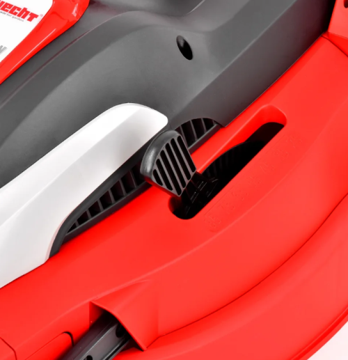 Avantajul acestei mașini de tuns iarba este, de asemenea, maneta de comutare pe toată lățimea mânerului, datorită căreia este posibil să controlați mașina de tuns iarbă cu orice mână și astfel să aveți cealaltă mână liberă, de exemplu, pentru a manipula cablul în siguranță. Pentru manipulare și transport puteți folosi mânerul comod direct pe capacul motorului, la parcare si transport veți aprecia cu siguranță posibilitatea de a plia rapid mânerul prin simpla deblocare a celor două manete în punctul de conectare cu șasiul. Desigur, există un buton de pornire de siguranță sau un limitator de tensiune pentru cablul de alimentare. Fără îndoială, sunt prezente butonul de pornire de siguranță sau dispozitivul de reducere a tensiunii cablului de alimentare.