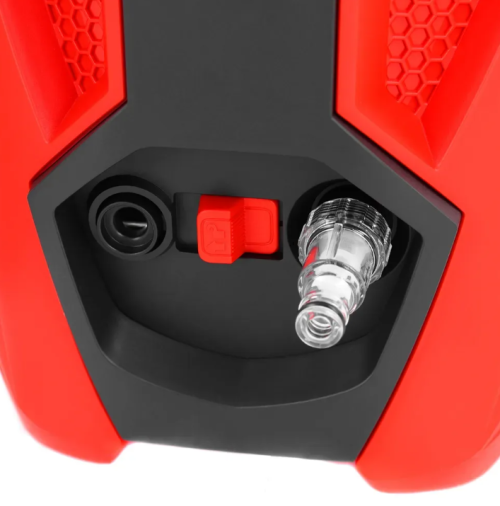 Modelul este echipat cu un duză variabilă, un rezervor integrat pentru detergent cu duză de spumare și un suport practic pentru accesorii. Datorită greutății reduse și roților, este ușor de transportat.