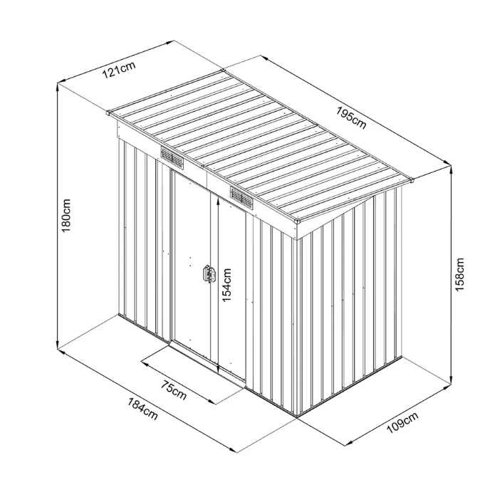 Înălțimea ușii acestei case este de 1540 mm, datorită construcției glisante, aceasta nu poate fi răsturnată și deteriorată, de exemplu, de impactul vântului. Lățimea ușii deschise este de 750 mm. Grilele de ventilație practice asigură ventilația aerului. Umiditatea nu se poate acumula în casă, prevenind astfel coroziunea inutilă a materialelor și uneltelor depozitate.