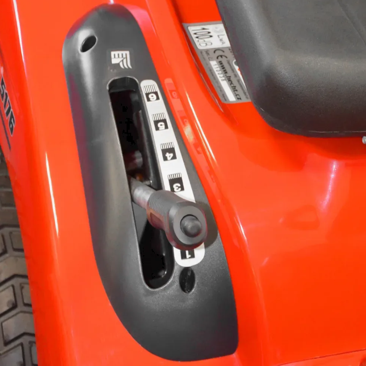 Tractor de grădină cu motor BRIGGS & STRATTON INTEK OHV cu o putere maximă de 17,5 CP, lățime de lucru de 102 cm, viteză de înaintare de 8,8 km/h și viteză de mers înapoi de 3,8 km/h, reglarea înălțimii cursei centrale de 30 - 90 mm, rulmenți cu bile, coș de colectare a țesăturii de 270 l și suprafață de cosit recomandată de 3000 - 4000m2. Greutatea tractorului este de 220 kg.