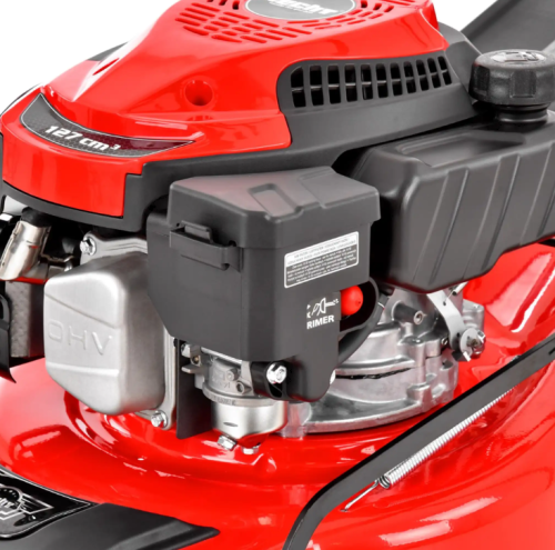 Mașină de tuns iarba pe benzină cu tren de rulare, potrivită pentru parcele mici și medii de până la 750 m2. Șasiul din oțel de înaltă calitate adăpostește un motor în patru timpi de 127 cm3 cu o putere nominală de 2 kW. Sub șasiu se rotește o lamă de oțel de 40 cm. Tăierile de iarbă sunt descărcate într-un coș de 40 l realizat din țesătură rezistentă. Reglarea înălțimii se realizează în mod centralizat cu ajutorul unei singure pârghii, în intervalul 25 - 75 mm. Viteza de deplasare este de 3,4 km/h. Datorită piulițelor cu aripi, mânerul căptușit, care amortizează vibrațiile, poate fi pliat rapid și ușor pentru transport sau depozitare.