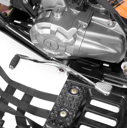 ATV-ul propulsat de un motor în patru timpi de 125 cm3, cu o putere de 7,2 CP, răcit cu aer. La prima vedere, va impresiona cu siguranță prin designul său sportiv. Cu siguranță, acesta poate fi folosit atât ca sursă de distracție, cât și ca ajutor în grădină. Utlizarea sa poate fi deprinsă rapid chiar și de un începător complet. Pentru a preveni "împrumutul" de către copii în absența dvs., este echipat cu o cutie de comutare cu cheie pe aripa frontală dreaptă. Pornirea se realizează în mod tradițional, cu ajutorul unui buton amplasat sub mânerul de pe ghidonul stâng. Accelerația este controlată prin intermediul unei pârghii acționate cu degetul mare, amplasată sub ghidonul drept. Direcția de deplasare (înainte/înapoi) este controlată prin intermediul unei pârghii acționate cu piciorul.