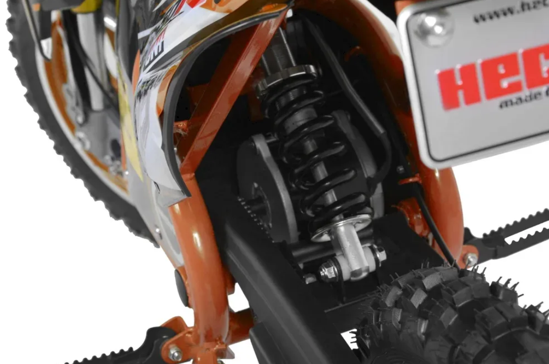 Motocicleta se bazează pe un cadru din oțel de calitate, cu capace elegante din plastic care completează aspectul unei motociclete adevărate. Roata din față este montată într-o furcă cu suspensie, iar suspensia roții din spate este proiectată cu suspensie centrală, asemănătoare cu mașinile reale de motocross. Jantele din aliaj de aluminiu sunt încălțate cu anvelope de cross - enduro, care asigură o aderență optimă atât pe suprafețe dure, cât și pe iarbă sau drumuri neasfaltate. Atât roțile din față, cât și cele din spate sunt echipate cu frâne pe disc.
