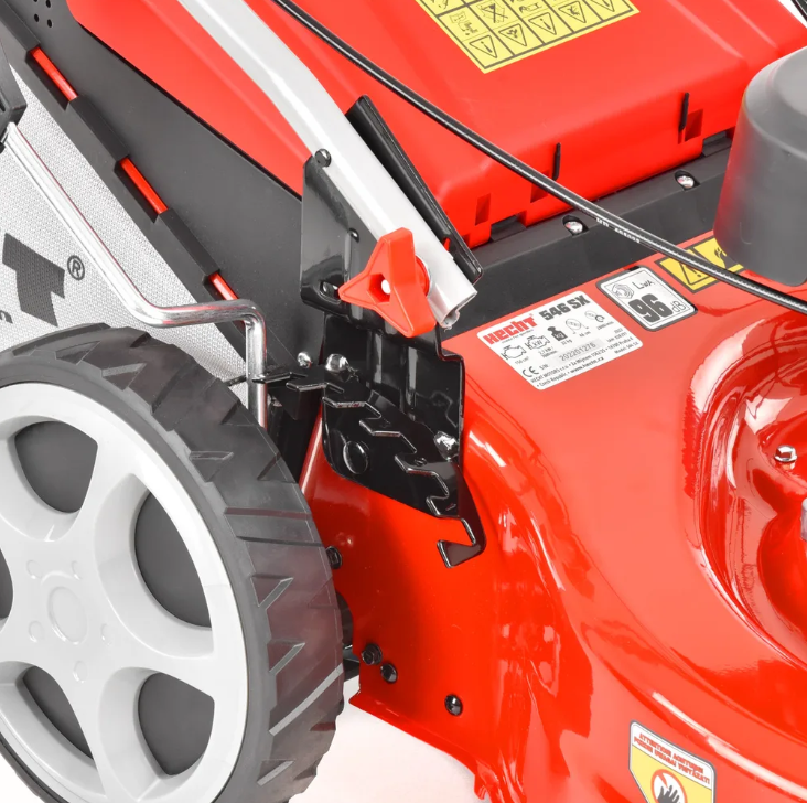 Mașina de tuns iarba HECHT 546 SX este o cositoare solidă pentru întreținerea regulată a grădinilor mici și mijlocii de până la 1000 m2. Baza sa este un șasiu robust din oțel echipat cu un motor Loncin OHV cu o putere nominală de 2,7 kW și o capacitate de 150 cmc, care antrenează un cuțit rotativ din oțel cu o lățime de lucru de 46 cm. Mișcarea este asigurată de roți montate pe rulmenți cu bile, a căror poziție poate fi schimbată cu ajutorul unei singure manete pentru a selecta înălțimea de ridicare în intervalul de la 30 la 80 mm.