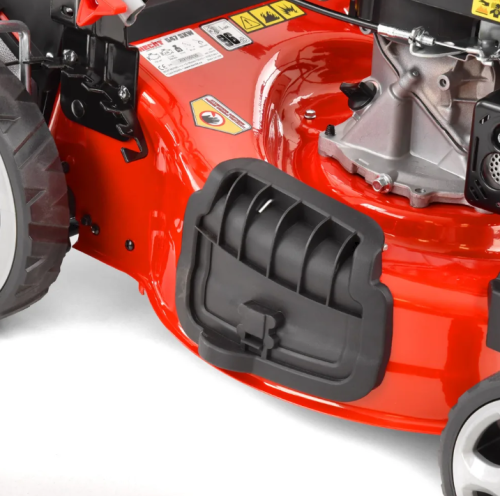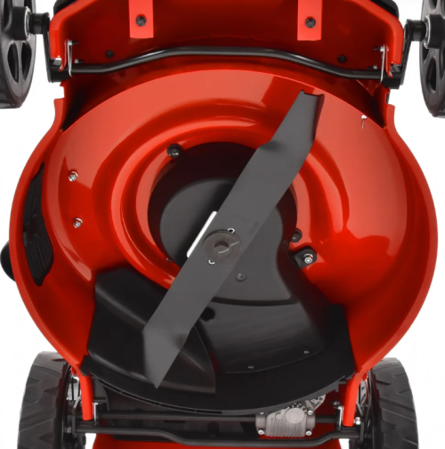 Un cuțit cu o lățime de lucru de 46 cm se rotește sub șasiu, ceea ce permite atât tunderea obișnuită, cât și mulcirea. Iarba tăiată merge apoi în coșul mare de 55 l în modul de bază. După îndepărtarea coșului și închiderea tunelului de evacuare cu clemă de mulcire, fluxul de aer de sub șasiu se modifică, iar mașina de tuns iarba tunde în modul de mulcire. Iarba este tăiată în bucăți mici care cad liber la rădăcinile gazonului, unde putrezesc complet în 2-3 zile și acționează ca un îngrășământ natural. Apoi, este suficient să fie pus capacul de evacuare laterală iar mașina de tuns iarba cu clemă de mulcire va tunde în modul cu evacuare laterală a ierbii tăiate. Iarba este aruncată lângă mașina de tuns iarba, astfel încât operatorul să nu pășească în iarba tăiată. Acest mod este potrivit dacă, de exemplu, tundeți iarba puțin supra-crescută pe un teren întreținut neregulat pe care nu doriți să îl colectați în coș. Mașina de tuns iarba este echipată cu autopropulsare, astfel încât este ușor de controlat chiar și cu un coș plin. Viteza de autopropulsare este de aproximativ 3,6 km/h.