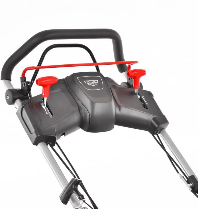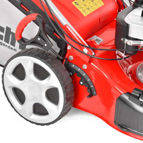 Controlul mașinii de tuns iarba de către oricine – întreaga mașină de tuns iarba este proiectată ergonomic pentru a asigura cea mai confortabilă utilizare împreună cu rezultate perfecte de cosire. Reglarea centrală pe șapte niveluri a înălțimii ridicării de la 25 la 75 mm garantează o utilizare optimă în fiecare grădină. Mânerul confortabil cu o prindere moale poate fi ușor ajustat în funcție de înălțimea staturii sau pliat pentru o mai bună depozitare. Mânerele lungi pentru controlul frânei și deplasării sunt potrivite atât pentru utilizatorii dreptaci cât și pentru stângaci. Pentru transport comod, mașina de tuns iarbă este echipată și cu un mâner frontal.