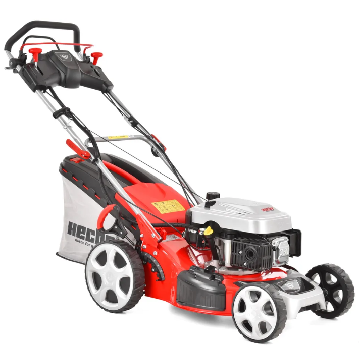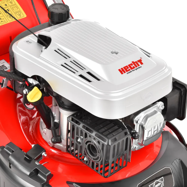 Pentru acționare a fost utilizat motorul Hecht OHV patentat, cu o capacitate de 135 cm3 și o putere nominală de 2,4 kW. Șasiul metalic stabil și solid este echipat cu un orificiu cu un capac pentru evacuare laterală. Livrarea include și un capac pentru descărcare laterală, care vă va permite să cosiți iarba în modul de descărcare laterală. Datorită acestui lucru, este posibil să tundeți chiar și iarba puțin supra-crescută fără ca mașina de tuns iarbă să înghită și ca operatorul să pășească în iarba tăiată.