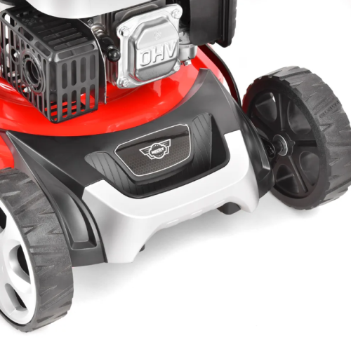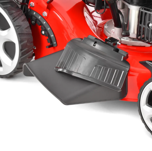 Viteza dorită este selectată cu o manetă direct pe panoul mânerului mașinii de tuns iarba. Această funcție va face posibilă reglarea vitezei mașinii de tuns iarba atât pentru o funcționare convenabilă, cât și pentru adaptarea la caracteristicile gazonului tuns și la structura terenului. Călătoriile mai lente sunt astfel mai potrivite pentru unii seniori, de exemplu. Viteza de deplasare mai lentă este potrivită și pentru gazonul supra-crescut, mașina de tuns iarbă nu înghite o cantitate mare de iarbă, iar atunci când se deplasează încet, este mai bine să o arunce în coș sau prin descărcare laterală. Pe de altă parte, puteți folosi motorul mai rapid în special pentru gazonul întreținut în mod regulat, unde tundeți doar capetele gazonului. Tunderea este atunci mai rapidă și nu irosiți puterea mașinii de tuns iarbă în mod inutil. Autopropulsarea este activată cu ajutorul manetei pe care o țineți de mâner în timp ce cosiți. Când maneta este eliberată, mașina de tuns iarba se oprește imediat. Această metodă de control servește și ca element de siguranță, astfel încât nu este posibil ca mașina de tuns iarbă să pornească singură accidental.