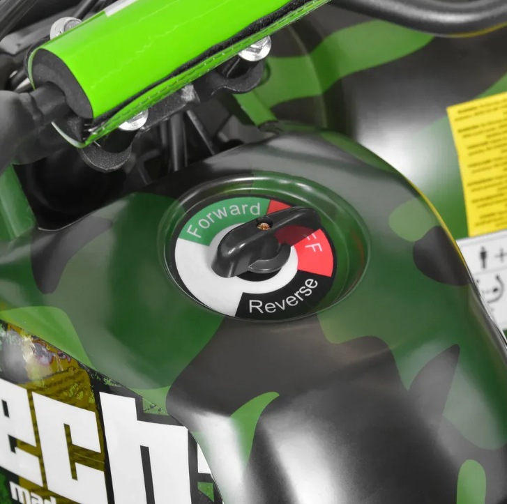 Bucurați-vă de aventură cu ATV-ul cu acumulator HECHT 56100 ! Cu o putere de 1000 W și o baterie de 36 V / 12 Ah, acesta atinge o viteză maximă de până la 25 km/h, permițându-vă o plimbare dinamică și distractivă. ATV-ul oferă 3 viteze, marșarier, pedală de siguranță și frâne pe disc pentru a vă oferi mai mult control și siguranță pe orice teren.