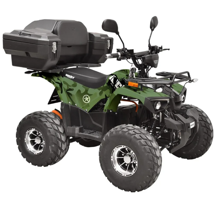ATV-ul cu acumulator HECHT 56199 este companionul perfect pentru toate călătoriile dvs. aventuroase. Este alimentat de o baterie de 72V / 20Ah. Acționarea este asigurată de un motor electric cu o putere de 1200 W, pe șosea ATV-ul se deplasează cu o viteză maximă de 45 km/h. Sarcina maximă este de 120 kg.