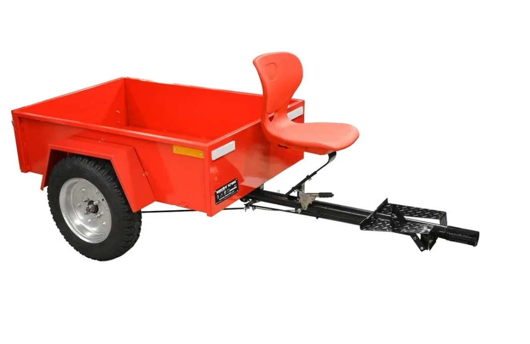 Un cărucior remorcă prevăzut cu frână și scaun care poate fi remorcat de un tractor adecvat sau de un cultivator multifuncțional. Pentru a face conexiunea, este necesar un dispozitiv de cuplare - bară de tracțiune compatibilă cu un anumit utilaj. Împreună cu bara de tracțiune HECHT 57101, acest cărucior poate fi conectat la cultivatorul multifuncțional HECHT 7100 sau HECHT 7970. Căruciorul este echipat cu lumini reflectorizante, o pedală de frână și o frână de mână. Prin simpla deblocare a manetei de pe dispozitivul de cuplare, remorca poate fi basculată, ceea ce facilitează descărcarea materialelor. Remorca de transport este echipată cu lumini reflectorizante, dar nu este destinată utilizării pe drumurile publice.