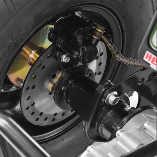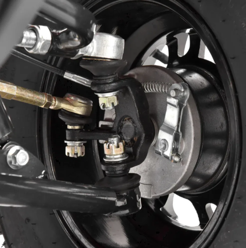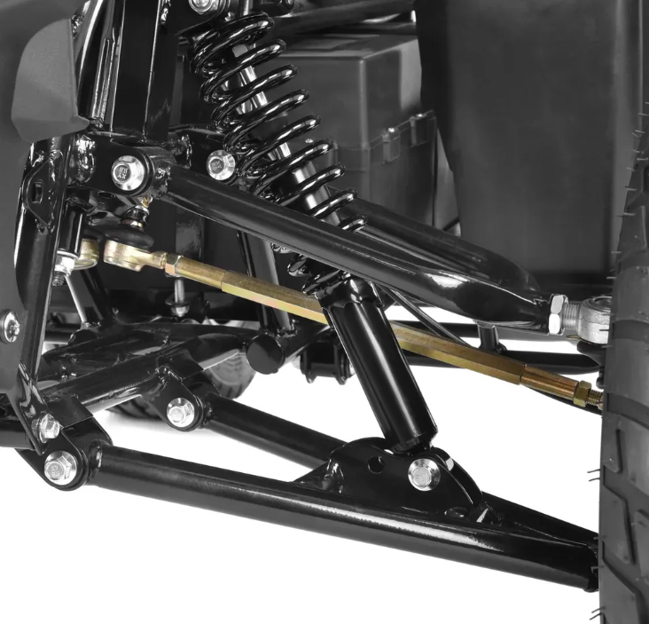ATV-ul este echipat cu frâne de tip tambur pe roțile din față și frâne de disc hidraulice pe roțile din spate. Frânele de tip tambur din față sunt acționate de o pârghie de pe ghidon, iar frânele cu disc hidraulice din spate sunt acționate de pedală, cu piciorul drept. Motorul este montat pe puntea spate cu suspensie, iar transmisia de la motor la punte se face prin intermediul unei cutii de viteze închise. Roțile din față sunt suspendate individual pe brațe de suspensie separate. Pe jantele din aluminiu bine concepute sunt montate anvelope mari, cu un model adânc al benzii de rulare, asigurând o tracțiune excelentă chiar și pe teren accidentat. Un tahometru digital este montat pe ghidon. Datorită aspectului său agresiv și accelerației sale, vehiculul se apropie de performanța "adultă" a ATV-urilor cu motor termic. Un avantaj semnificativ este funcționarea complet silențioasă și lipsa emisiilor. Astfel, poate fi utilizat în zone în care zgomotul sau mirosul emisiilor ar putea deranja mediul înconjurător.