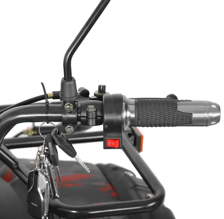 Este echipat cu o cutie de comandă fără cheie. În loc de cheie, se utilizează telecomanda, în prezența căreia ATV-ul se activează. Fără ea, partea electronică nu va porni. De asemenea, telecomanda activează sau dezactivează alarma. Pentru transportul unei încărcături mai mici sau a cumpărăturilor, puteți utiliza suporturile față și spate, iar vehiculul este echipat cu un dispozitiv de remorcare (bila) pentru tractarea remorcilor.