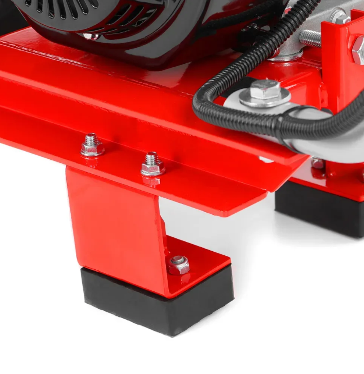 Structura tocătorului este concepută punând un accent maxim pe stabilitate și siguranța operatorului. Șasiul metalic robust, cu o greutate totală de 87 kg, minimizează vibrațiile în timpul funcționării, în timp ce pâlnia largă de alimentare, prevăzută cu o margine de siguranță, facilitează manipularea materialului ramificat. Coșul de evacuare este echipat cu un deflector reglabil, care permite direcționarea precisă a așchiilor mărunțite direct în benă sau în locul destinat compostării. Pentru un transport ușor, mașina este echipată cu roți masive și o mâner ergonomic, ceea ce permite manevrarea chiar și pe terenuri dificile.