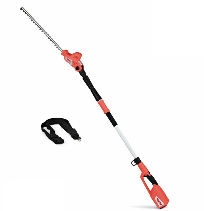 HECHT 6504 este o mașină de tuns gard viu telescopică, cu acumulator, cu care puteți tăia ușor gardurile vii chiar și la înălțimi care depășesc 3m. Brațul telescopic, cu reglarea corectă a lungimii, vă permite să tăiați confortabil atât partea frontală, cât și cea superioară a gardurilor vii, fără a fi nevoie să urcați pe scări sau să vă aplecați. Trebuie doar să puneți mașina de tuns gardul viu pe umăr și dintr-o singură mișcare puteți tăia gardul de la pământ până la marginea de sus. Pentru a tăia partea superioară, este suficient să îndoiți lama la unghiul necesar. Datorită motorului cu acumulator, nu trebuie să vă faceți griji cu privire la niciun cablu de alimentare care v-ar limita munca sau pe care ați risca să-l tăiați din neatenție.