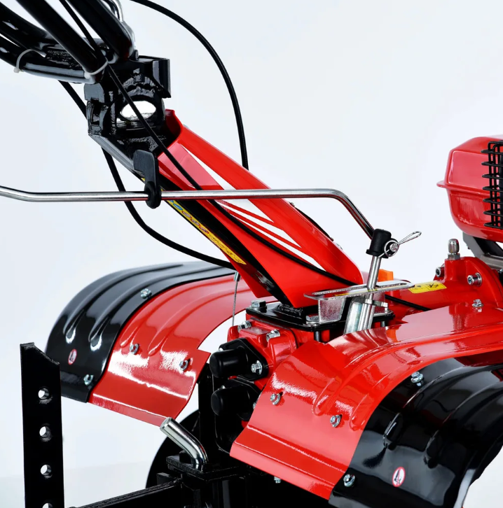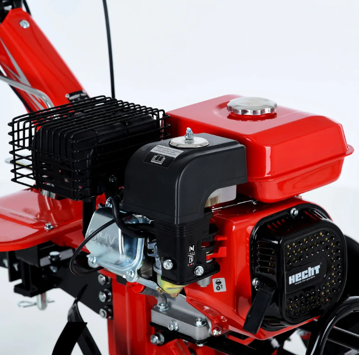 Motocultorul HECHT 7100 este un utilaj cu o gamă foarte largă de accesorii opționale. Poate fi transformat într-un tractor cu o singură axă. Pentru propulsie este utilizat un motor HECHT OHV cu un singur cilindru în patru timpi cu o cilindree de 212 cm3. Viteza de lucru a motorului este de 3200 rpm. Pornirea se face folosind o tragere clasică pe partea din față a motorului. Există și o bobină de șoc pentru pornirile la rece. Puteți regla cu ușurință turația motorului cu maneta de pe ghidonul din dreapta, iar pe ghidonul din stânga veți găsi ambreiajul și comutatorul electric al motorului. O manetă de schimbare este amplasată convenabil sub ghidon. Ghidonul poate fi reglat rapid la înălțimea dorita, îl puteți adapta cu ușurință la munca realizată sau la înălțimea operatorului.