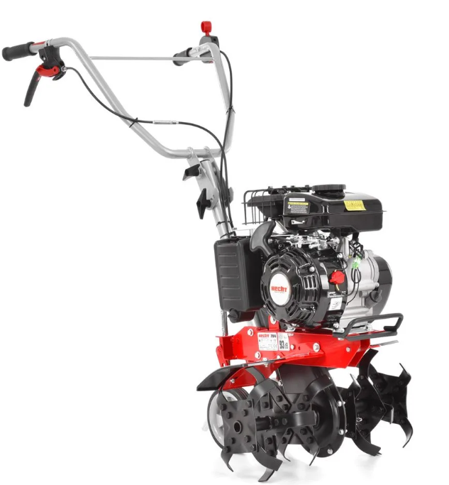 HECHT 784 este un motocultor eficient pentru orice grădină. Datorită motorului puternic LONCIN OHV, este potrivit pentru toate tipurile de sol, iar cu lățimea de lucru de 43 cm, este un ajutor practic chiar și în părțile greu accesibile ale brazdei. Mașina este echipată cu șase seturi de cuțite de cultivare din oțel și un capac de protecție metalic împotriva materialului care sare.