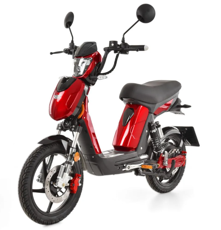 Moped electric cu omologare pentru utilizare pe căile rutiere. Acționarea este asigurată de un motor fără perii de 800 W amplasat în butucul roții din spate. Acesta este alimentat de un acumulator de litiu de 12 Ah, care oferă scuterului o autonomie de până la 40 km pe încărcare. Dacă puterea motorului sau capacitatea acumulatorului este insuficientă, autonomia poate fi mărită prin pedalare într-un mod similar cu cel al unei biciclete electrice. Viteza maximă este de 45 km/h. Roțile sunt echipate cu anvelope tubulare de 14" x 25, frânele cu disc au grijă de oprirea în condiții de siguranță. Bateria se încarcă complet în 6-7 ore.
