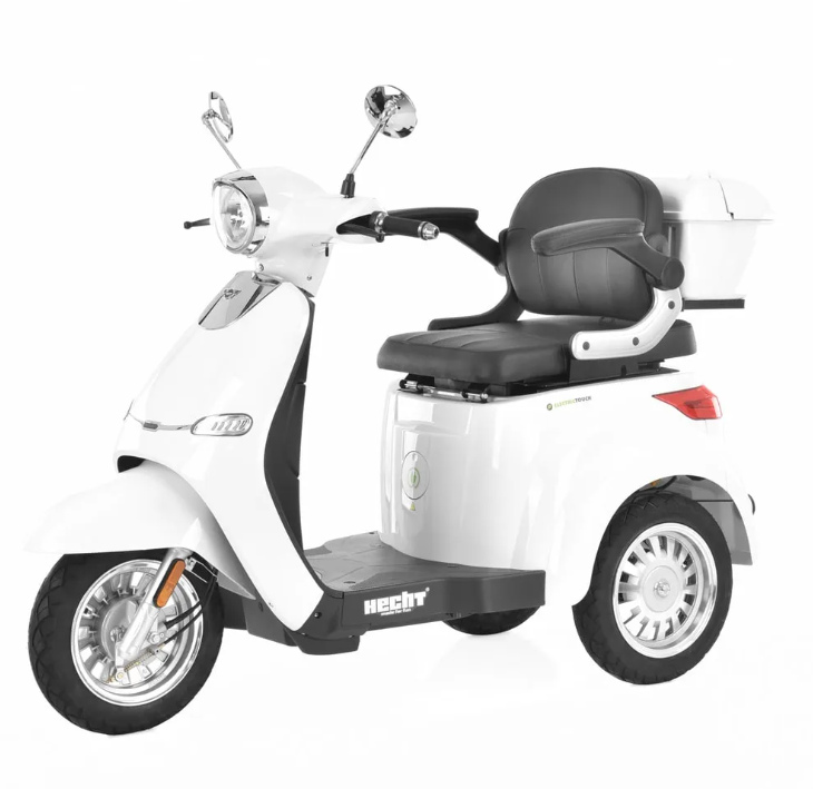 Scuter electric – cu trei roți - datorită stabilității, ușurinței de întreținere și funcționare, va fi apreciat nu numai de persoanele cu mobilitate redusă. Scaunul confortabil reglabil (culisant) cu cotiere oferă șoferului o poziție stabilă de ședere și o direcție confortabilă. Toate comenzile sunt amplasate pe ghidon, astfel încât scuterul poate fi condus în siguranță chiar și de persoanele cu mobilitate redusă a membrelor inferioare. Pe partea stângă a ghidonului se află comenzile standard pentru lumini, semnalizatoare și unui claxon, pe partea dreaptă a ghidonului sunt comenzi pentru funcții care nu mai sunt atât de comune pentru toate scuterele. De exemplu, există un comutator de limitare a vitezei. Acest lucru permite ca viteza maximă să fie setată la 15, 20 sau 25 km/h. Desigur, există și un buton cu care este posibilă activarea marșarierului. Fiabilitatea ridicată, întreținerea ușoară și costurile reduse de operare sunt, de asemenea, avantaje incontestabile. Tricicleta este omologată pentru utilizare pe căile rutiere, pentru a o putea conduce este suficient un permis de conducere categoria AM.
