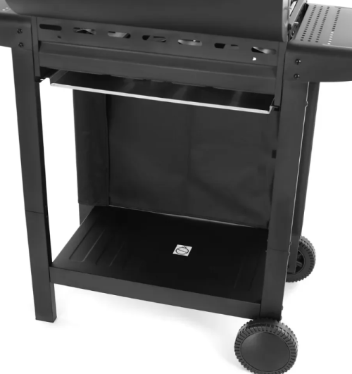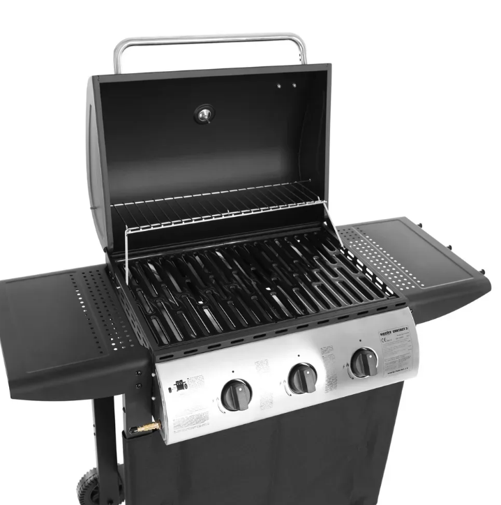 Grătar pe gaz cu propan-butan. 3 arzătoare principale, putere totală 8,4 kW. Dimensiunile totale ale suprafeței de grătar sunt 61 x 41 cm. Cu capacul închis, grătarul are 101 cm înălțime, 98,6 cm lungime și 48 cm lățime.