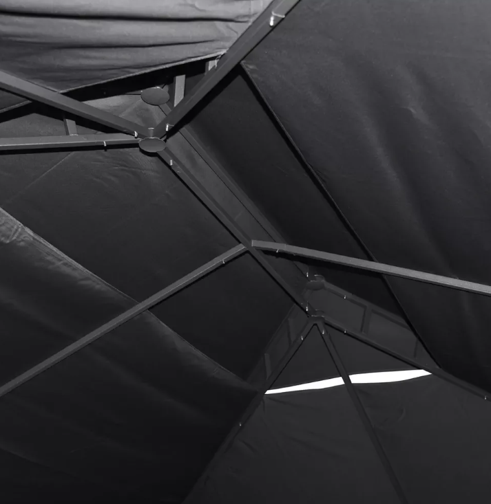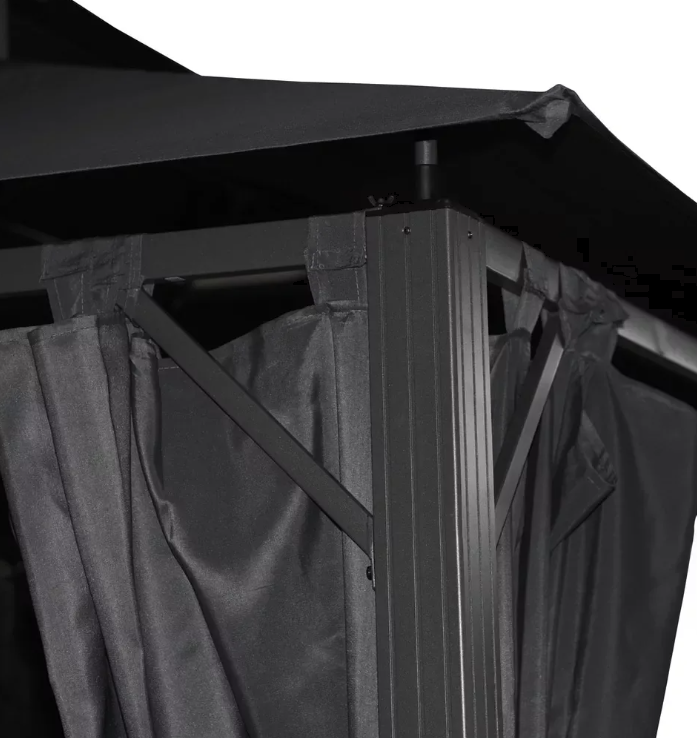 Foișor de grădină de lux cu construcție din aluminiu și oțel și învelitoare din poliester de înaltă calitate. Acesta vă va proteja în mod fiabil de soarele fierbinte, de privirile nedorite ale vecinilor sau de vântul slab.