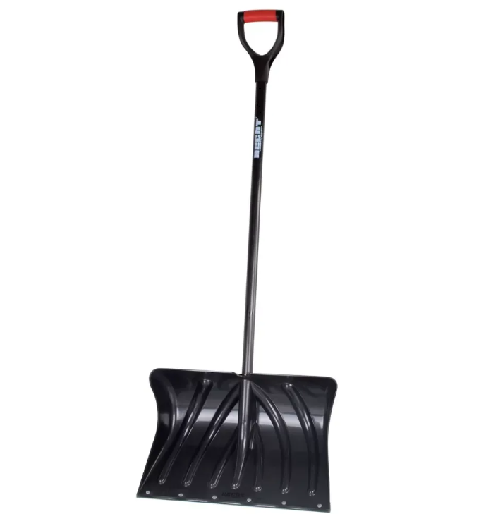 Lopată de zăpadă din plastic cu mâner din plastic întărit cu tub de oțel, mâner din polipropilenă. Înălțime 141 cm, lățime de lucru 50 cm.