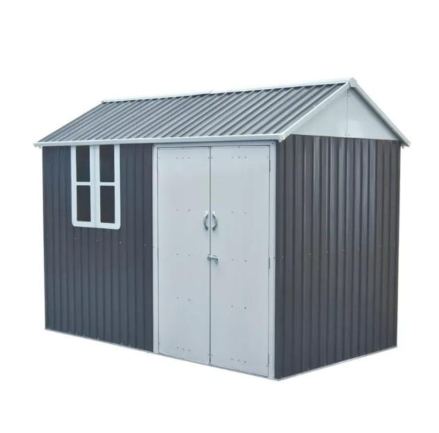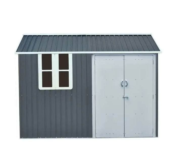 Casă de grădină de înaltă calitate cu construcție galvanizată durabilă într-o combinație de gri și gri închis. Cu planul său de 1620 x 2900 mm (dimensiunile exterioare ale bazei), permite depozitarea tuturor uneltelor, echipamentelor mici de grădină și a altor materiale de grădină care trebuie păstrate uscate.