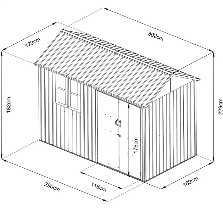 | Nume produs | HECHT6x10NORD - Magazie gradina din tabla 162 x 290 x 222 cm |