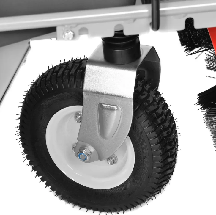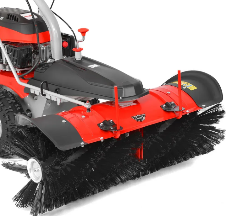 Peria poate fi completată cu accesorii opționale (nu sunt incluse în livrare, trebuie achiziționate) - colector de gunoi și plug. Împreună cu plugul, peria poate fi transformată cu ușurință într-un dispozitiv puternic de curățare a zăpezii în timpul iernii.