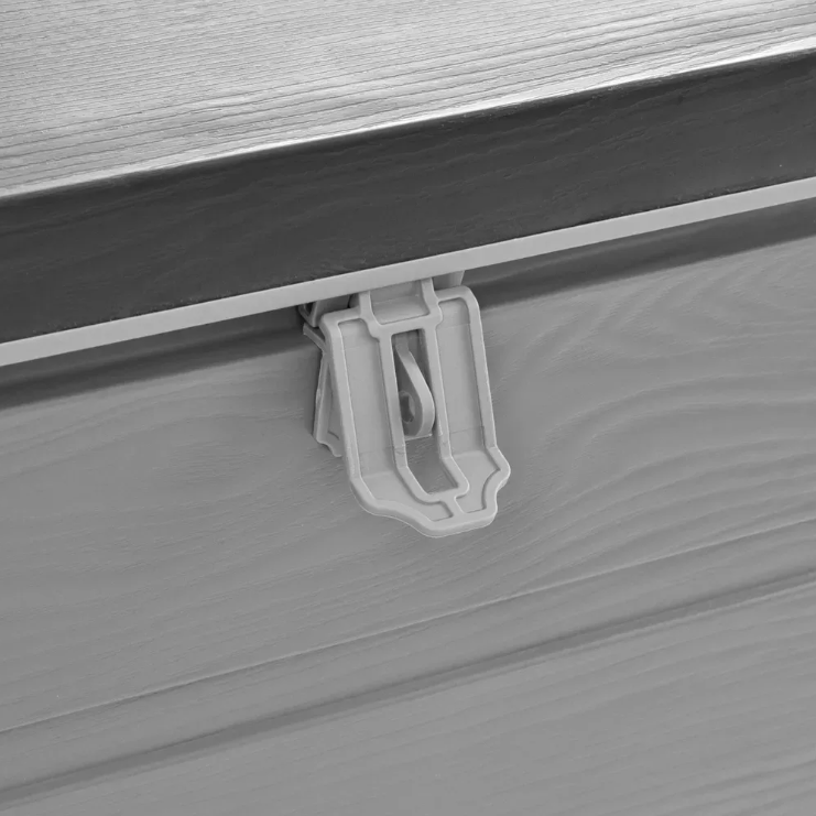 Este echipat cu balamale fixe cu amortizoare de deschidere pentru o manipulare mai ușoară a capacului. Amortizoarele împiedică, de asemenea, închiderea bruscă a capacului și eventualele răniri ale degetelor și altele asemenea. Cutia este fabricată din plastic rezistent și durabil care nu necesită practic nicio întreținere specială. Pentru o manevrare ușoară, cutia este echipată cu două mânere pe laterale.