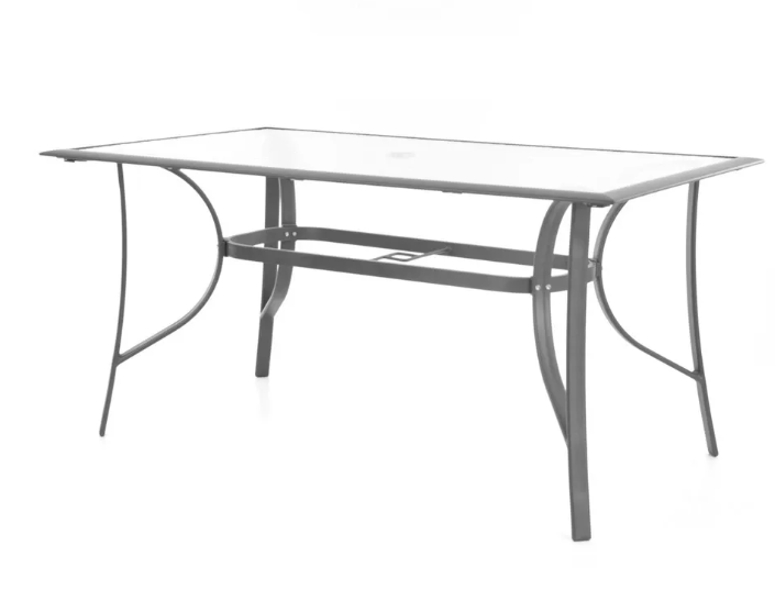 Fabricat din profile de oțel-aluminiu cu acoperire comaxit. Potrivit pentru exterior și interior. Potrivit pentru utilizare în medii umede. Masă cu sticlă călită. L 150 × P 90 × H 73 cm